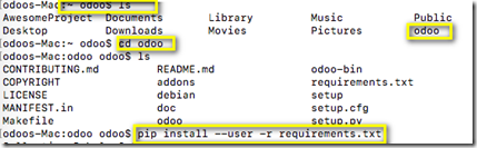 7)安裝python dependencies, 在命令列中至odoo 10 下載的目錄中找到requirements.txt,再輸入下列語法